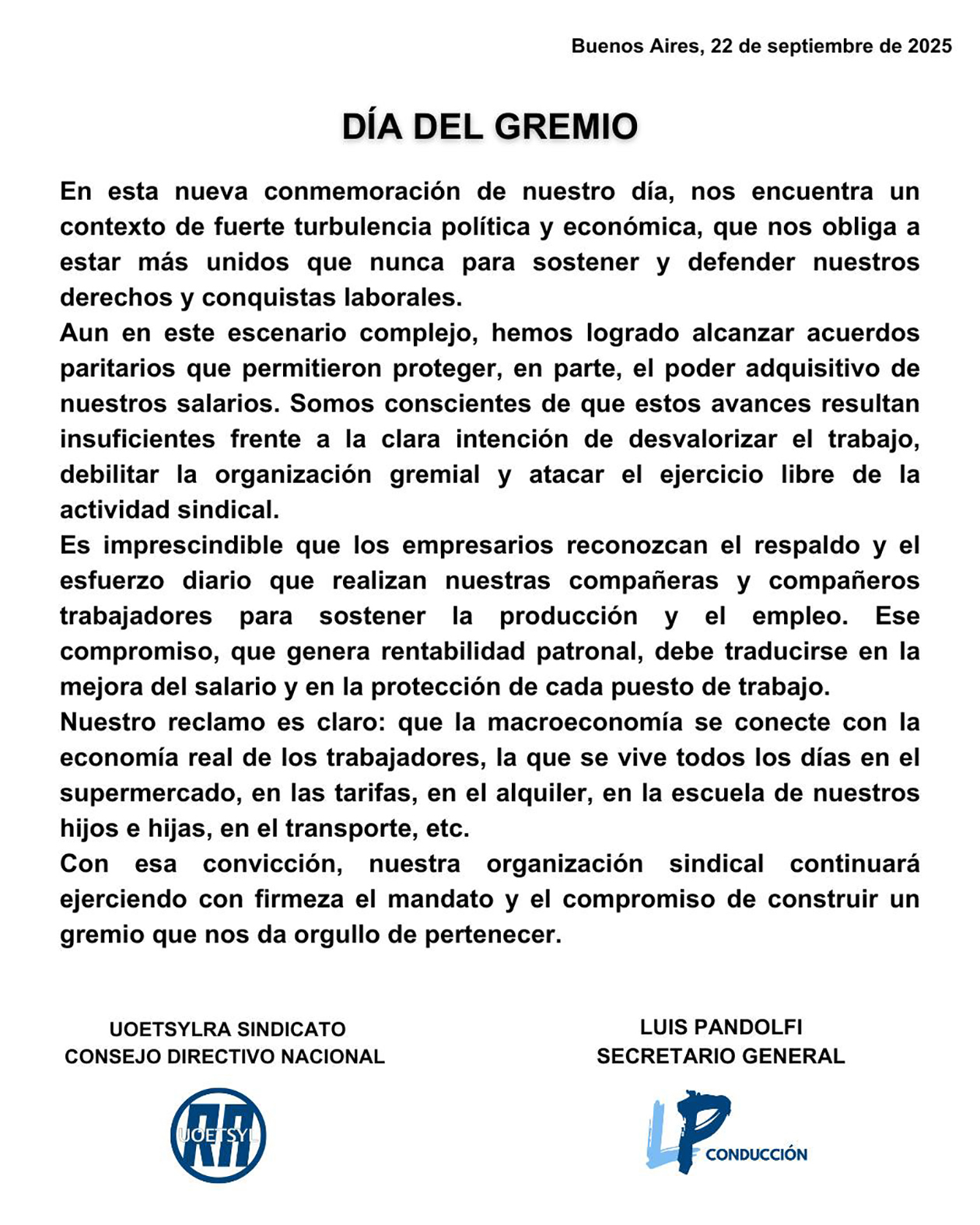 Con firmeza y compromiso de construir un Gremio que nos da orgullo pertenecer!